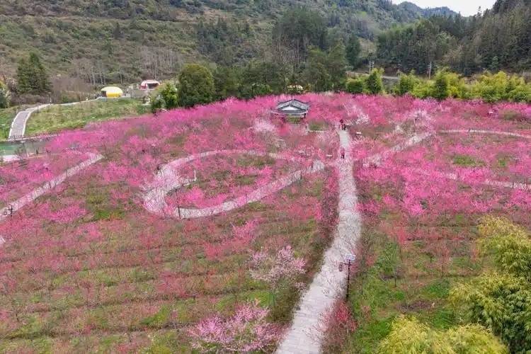 “满树和娇烂漫红,万枝丹彩灼春融”,这漫山的桃花,不仅惊艳了时光,更温暖了乡人的日子。春日里,桃林是游人争相前往的打卡地,带动餐饮、住宿、文创等业态蓬勃生长;待到秋日,沉甸甸的桃子挂满枝头,又成了果农们丰收的希望。一季花开,串起了“春赏花、夏避暑、秋摘果、冬康养”的四季产业链,让曾经沉寂的山村,在花事里重新焕发生机。