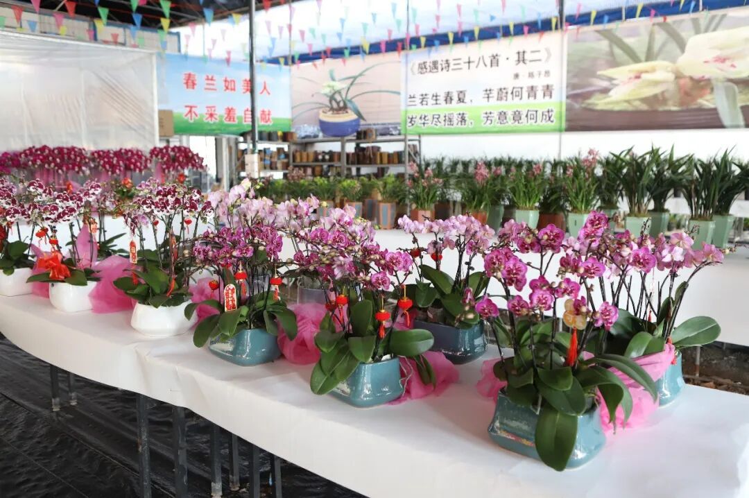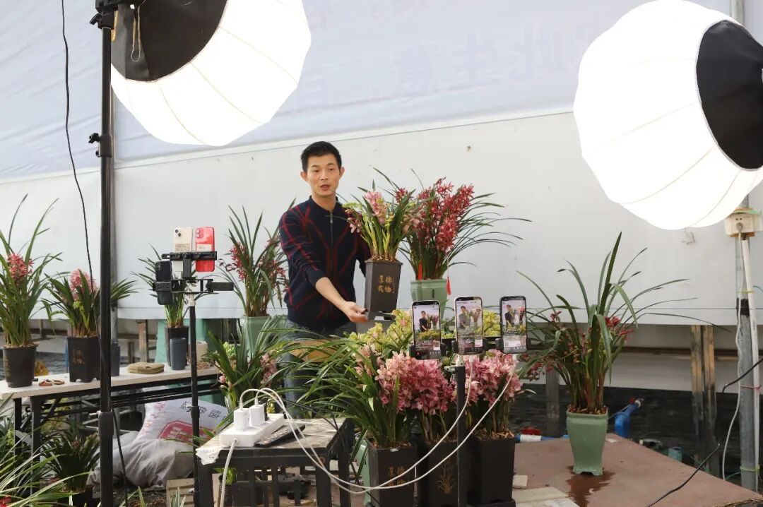 基地由从化区创展兰花协会会长、广州市天濠农业科技有限公司总经理邝浩强倾心打造。基地占地10多亩,以线上销售为主要模式,不仅开设有线上店铺,还有主播直播带货,让消费者足不出户就能挑选心仪的兰花。“兰花保水性好,适合线上销售,现在每天销量大概2000单,随着春节临近,订单量预估还会持续上升。”基地相关负责人介绍,虽然展示基地规模不大,但背后依托的是鳌头镇200亩的种植基地,培育着几百万盆兰花,形成了自产自销的完整链条,既能保证品质,又能让价格更实惠。